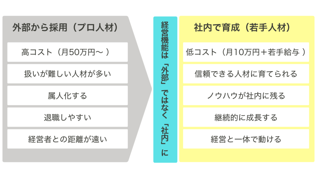 外注ではなく、社内に経営機能を持つことを目的としています。